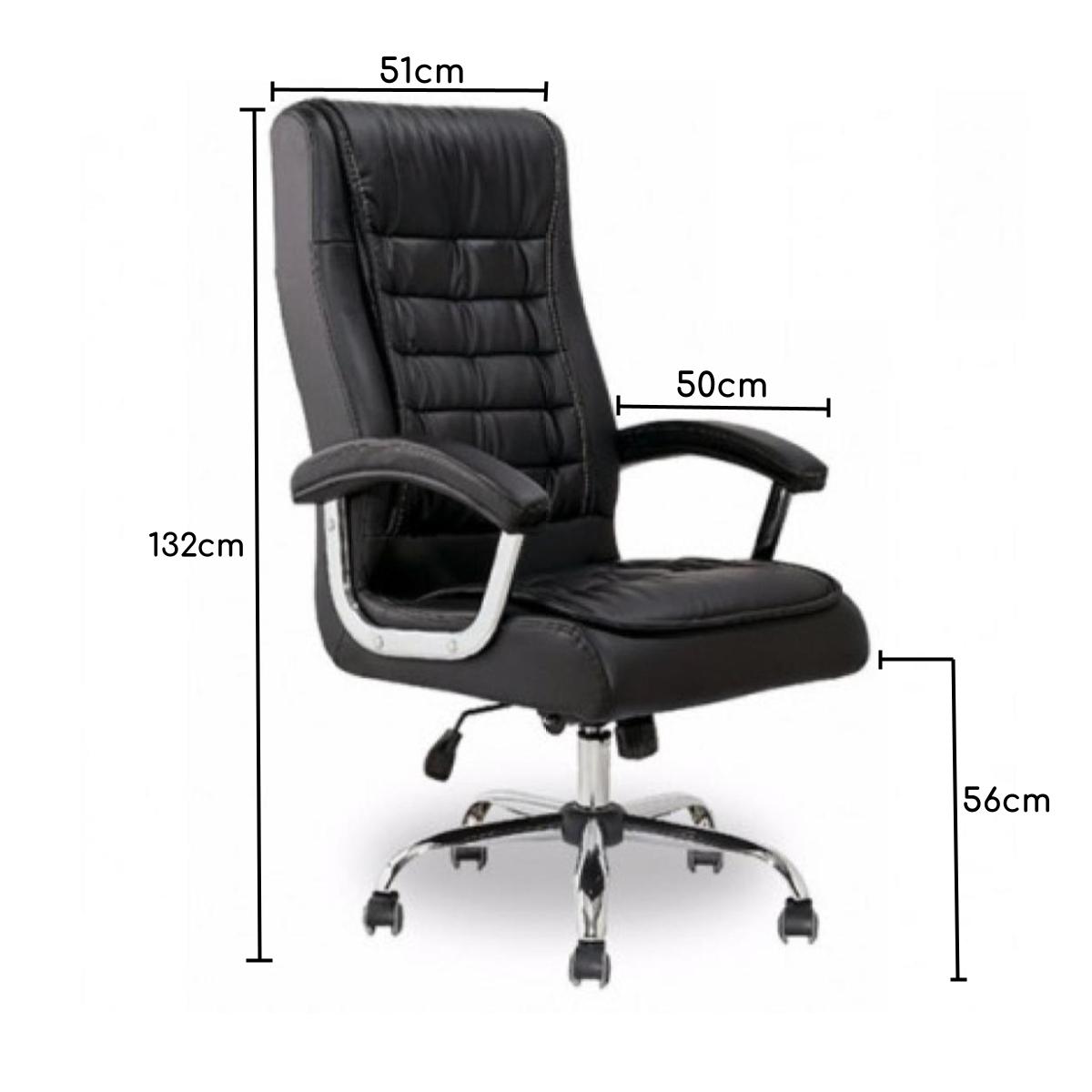 Estilo executivo sofisticado, com acabamento em couro sintético de fácil conservação.